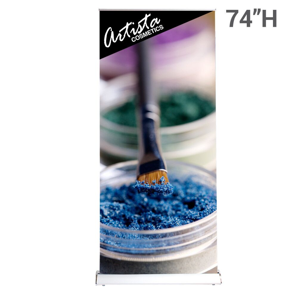 Set up: Quick and easy. Banner attaches by Velcro on the bottom and by Clamp bar on the top. Clean edge to edge display.
