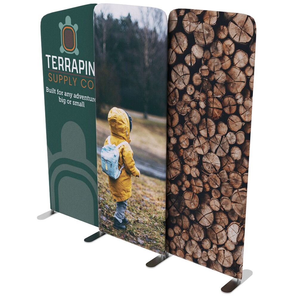 Modular has officially met tube frames! EZ Tube Connect modular tube display system lets you configure multiple shapes, sizes and frames. EZ Tube Connect lets you choose from straight, round or slant top shapes, 90” or 96” frame heights, and 2ft, 3ft, 4ft, 5ft, 8ft and 10ft frame widths. Each EZ Tube Connect frame easily connects, using aluminum tubing with push button snaps to lock and to attach to feet. Feet have two mounting points to connect frames side-by-side. Customize single- or double-sided stretch fabric graphics that pull over frames and zips closed underneath. Medium Hard Case included.